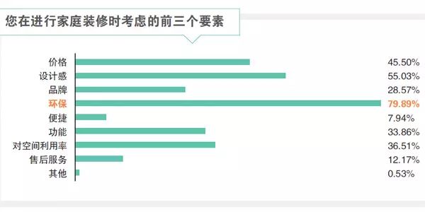 相比之下,價格要素退居到第三位,選擇價格為裝修前三個需考慮要素的受訪者僅占比45.21%,低價對這個正在崛起的消費群體吸引力在下降,另有35%左右的新中產(chǎn)階層將功能和對空間的利用率列入家庭裝修前三個需特別關(guān)注的要素中。