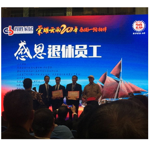 團(tuán)隊(duì)的重要性,至于得勝家居企業(yè)集團(tuán)有特別的意義,所以,20周年慶典上,特別對(duì)榮譽(yù)員工頒發(fā)了獎(jiǎng)杯及獎(jiǎng)金。